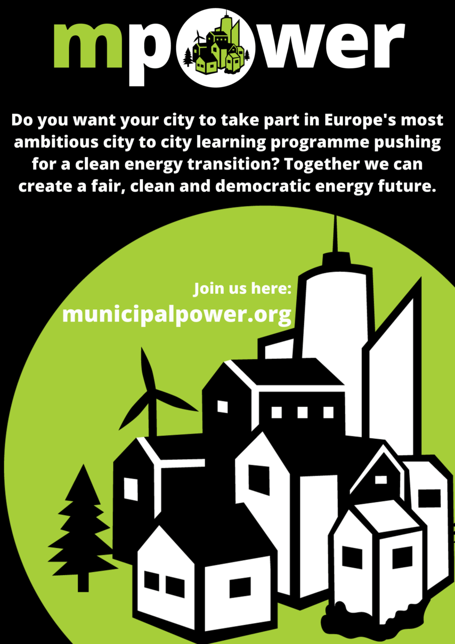 mPower will tackle all sorts of pertinent issues facing cities right now – how to attract finance, how to deploy smart grids or districting heating systems, how to conduct large scale retrofits and so on. But mPower is not just about technical action – at the heart of mPower’s approach and political vision is the facilitation of greater and more meaningful democratic control and ownership, working with decision makers in city authorities to embed, at a deeper level, energy transition projects that have energy democratic and justice principles.