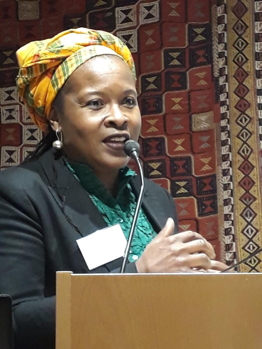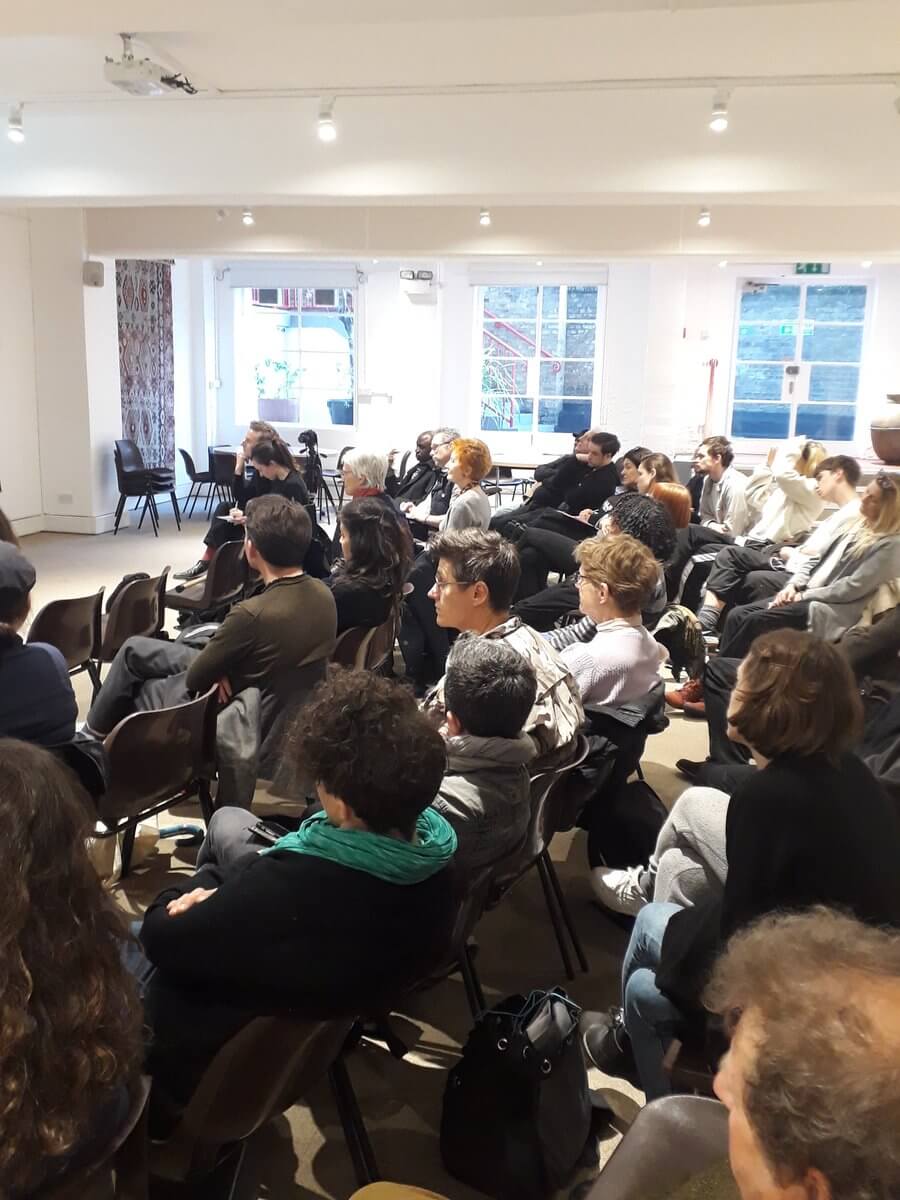 Sokari Douglas Camp at ‘My Public Sculpture Protests & Indomitable Battle Bus!’ Talk and discussion, PMSA, London, 1st May 2018